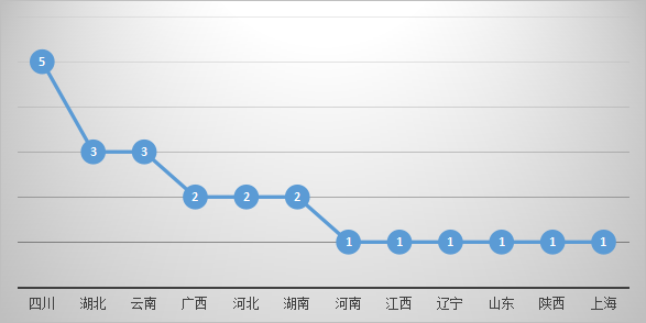 23起事故共发生在12个省份,新闻数超过2起的省份为:四川、湖北、云南、广西、河北、湖南。